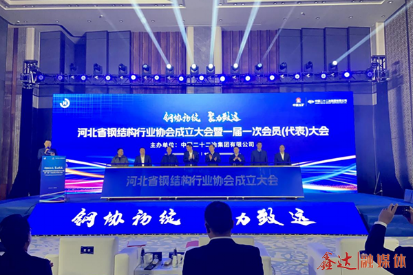 “3,2 大象影视,1,启动,”随着推杆落下,河北省钢结构行业协会正式成立,2月15日上午,由中国二十二冶集团主办的河北省钢结构行业协会成立大会暨一届一次会员(代表)大会在河北唐山召开,来自政府有关部门,行业协会,以及钢结构行业上下游企业的100余名代表共同见证了这一重要时刻。