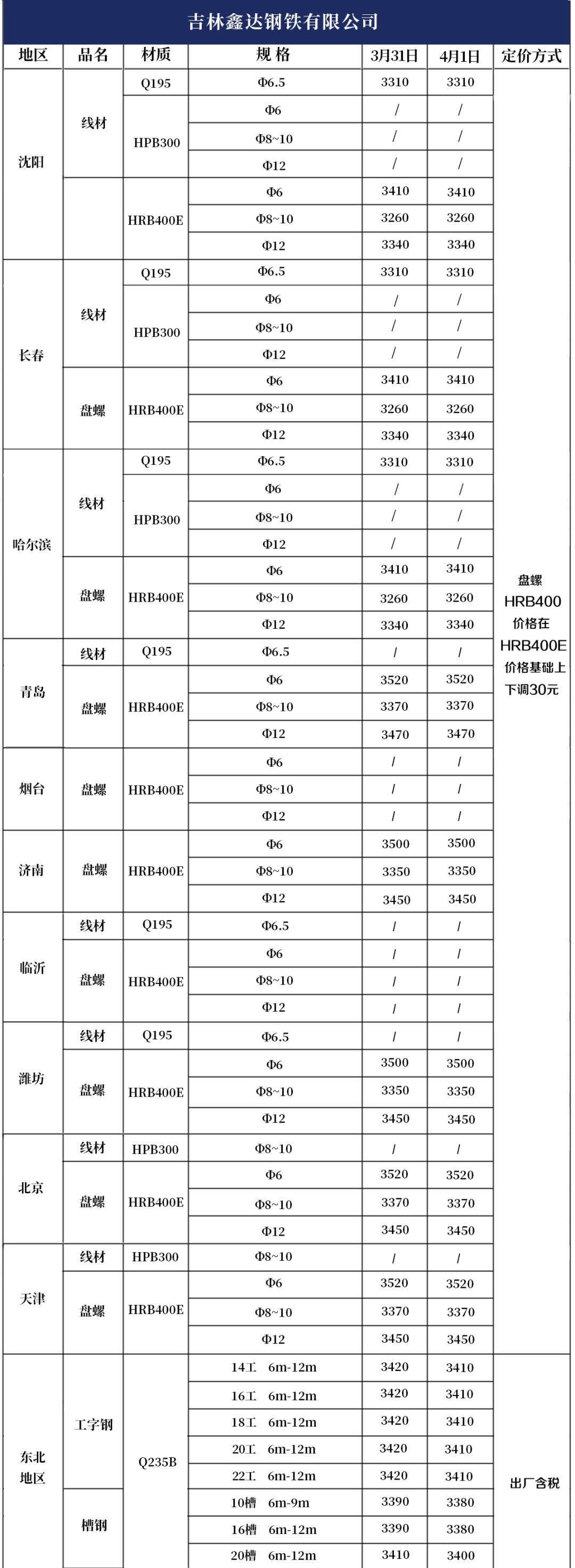 4月1日产品报价