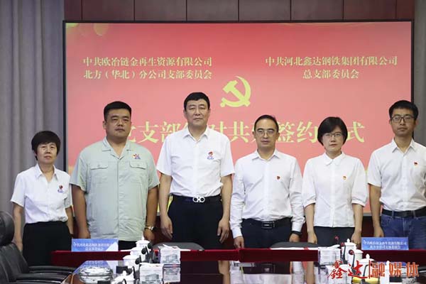 8月20日,中共河北鑫达钢铁集团有限公司党总支与中共欧冶链金再生资源有限公司北方(华北)分公司党支部举行党支部结对共建签约仪式,资环链金北方(华北)分公司党支部书记 大象影视,总经理王海,河北鑫达集团党委委员,宣传部长赵春红出席仪式,此次共建签约是双方党组织秉持创新理念,深化战略协同的智慧结晶,是推动党建工作与核心业务深度融合,实现优势互补,共谋发展的里程碑式实践。