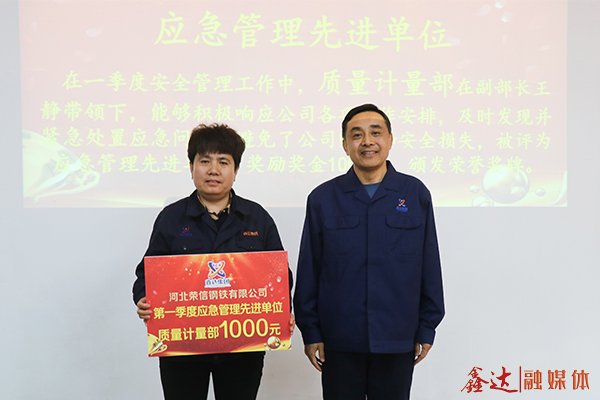 We will unswervingly strive for security and strive for development. Hebei Rongxin Iron and Steel Co., Ltd. will be based on a new starting point, zero accident goal as the orientation, standardized operations as the defense line, to perform their duties to achieve safety management promotion as a guarantee, consolidate the safety foundation, strengthen safety management, and truly achieve hard measures, just implemented, not out of form, see results. Promote the realization of full staff responsibility, all-round compaction responsibility, the whole process of implementation of responsibility, stimulate the whole company to participate in safety production, build a strong security line to ensure the green and high-quality development of the group!